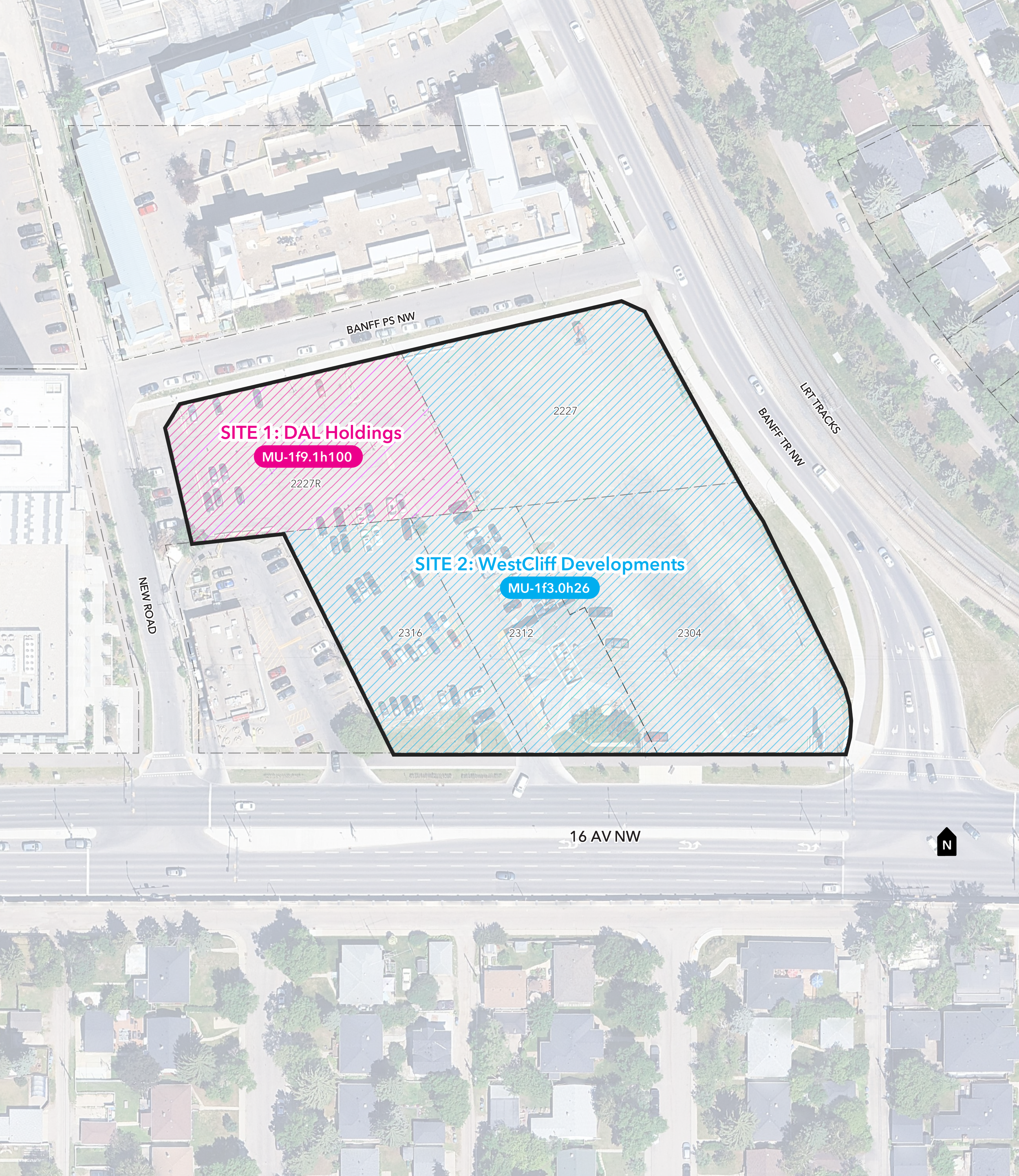 On behalf of DAL Holdings and WestCliff Developments, CivicWorks has submitted a Land Use Redesignation (rezoning) application to The City of Calgary for the lands located at 2227 Banff TR NW and 2304–2316 16 AV NW to align existing legacy land use rules with the contemporary policies of the recently approved South Shaganappi Communities Local Area Plan (2025).